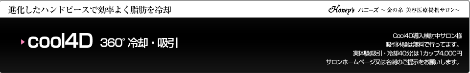 水は0℃、脂肪は4℃で凍る温度差を利用して、4℃で凍らせ死滅した脂肪細胞不要物になるため、時間をかけて体外に排出されていく理論です。 |
