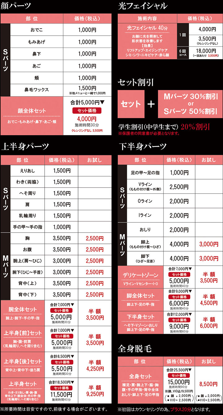 *施術の前夜から当日までに脱箇所のシェービングをお願いします。