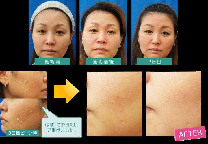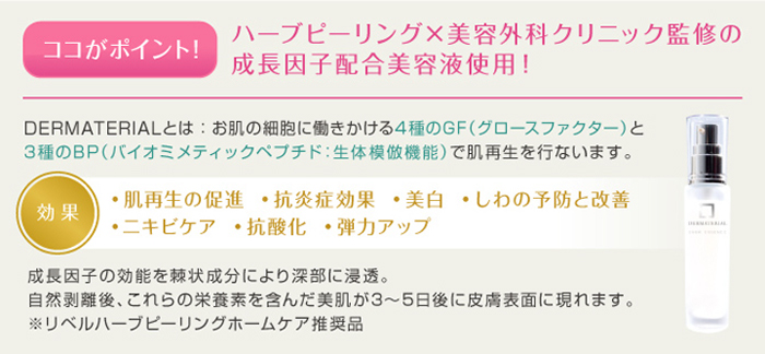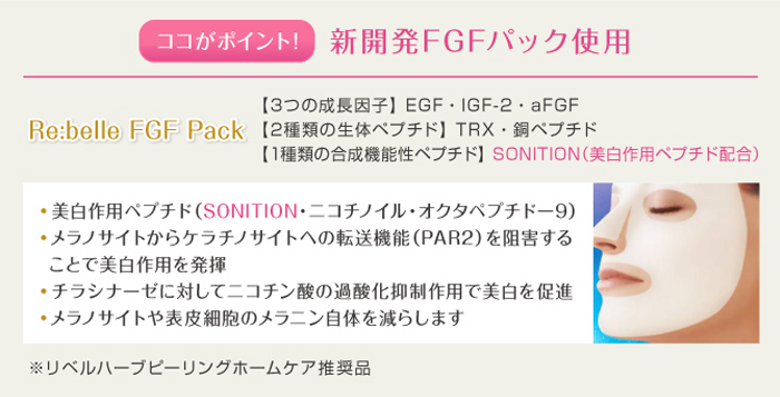 ③ 成長因子100%美容液(ダーマテリアル)を真皮にまで届けることでターンオーバーを促進、自然剥離を起こしやすくし、効果を増大させます。さらに、高濃度の成長因子が高濃度・高配合されたベルクリニックオリジナルパックで全ての効果を閉じ込め、お肌の鎮静・修復・再生化を図ります。